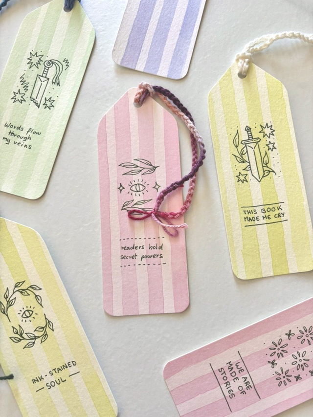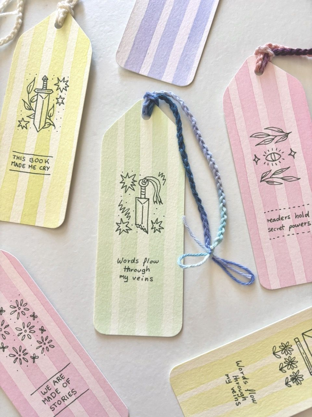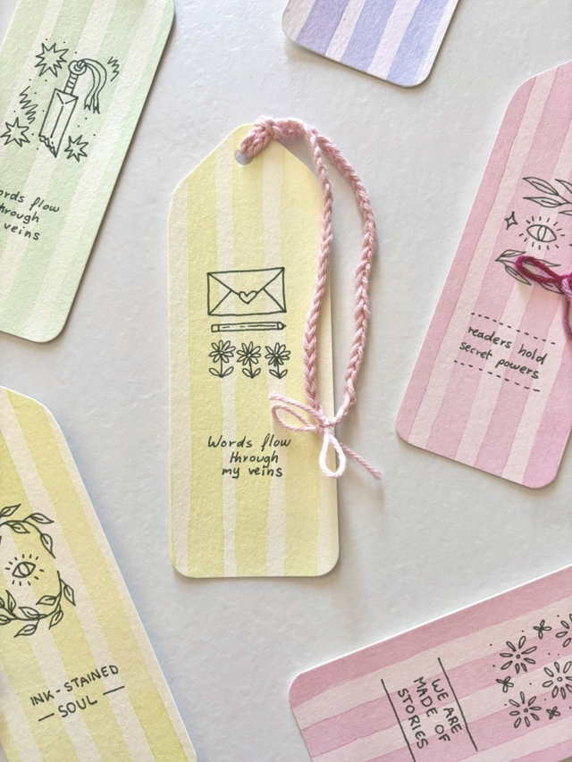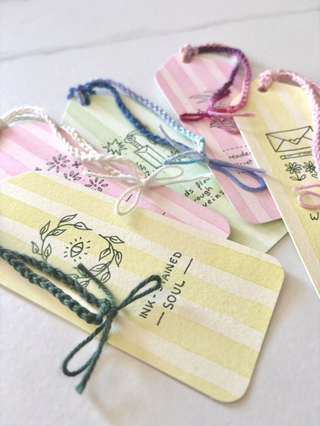 Add a little charm to your reading experience with these handmade cotton ties. Each tie is carefully crafted from soft cotton thread, crocheted into a delicate chain, and finished with a neat bow knot to bring a playful touch to your bookmarks. These ties are designed to perfectly complement your handmade bookmarks and come in five lovely color options: White, Dark Green, Pale Pink, Pink / Purple Fade, Blue / Purple Fade.